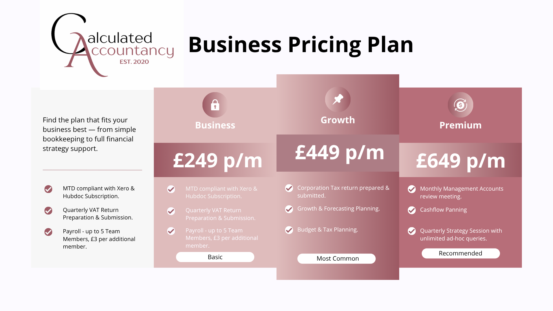Business Plan – £249 / month - Perfect for small to medium limited companies.